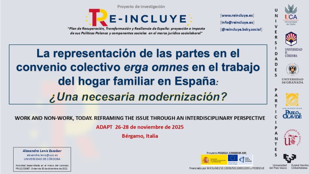 El proyecto Re-incluye ha participado en la XV International Conference ADAPT. «Work and non-work, today. Reframing the issue through an interdisciplinary perspective», celebrada en Bérgamo los días 26, 27 y 28 de noviembre de 2025.